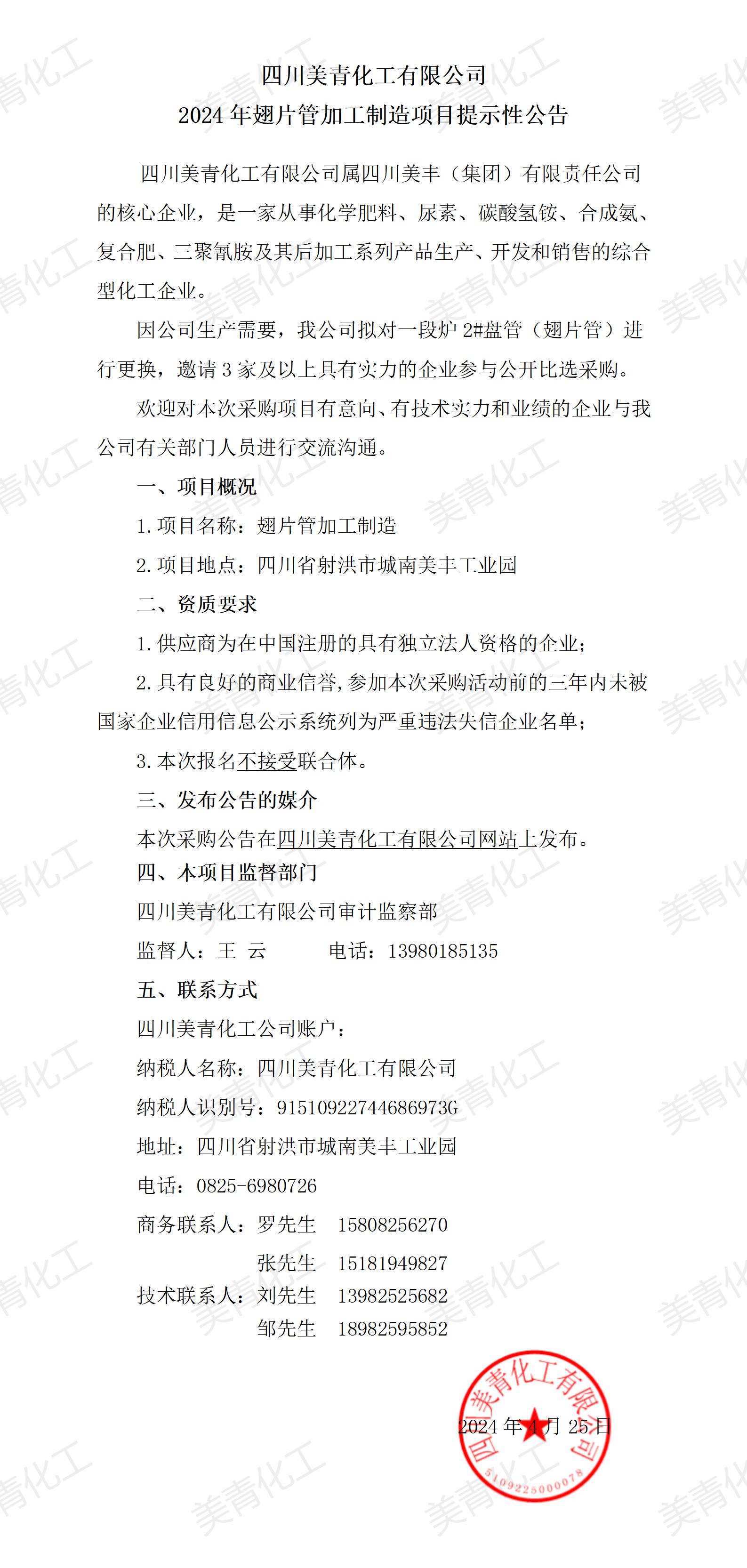 2024年翅片管加工制造項(xiàng)目提示性公告